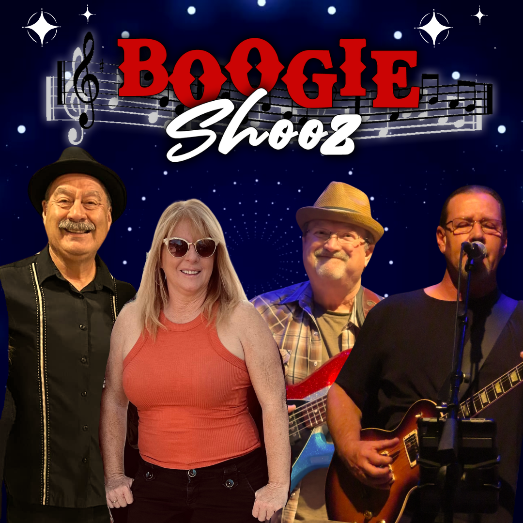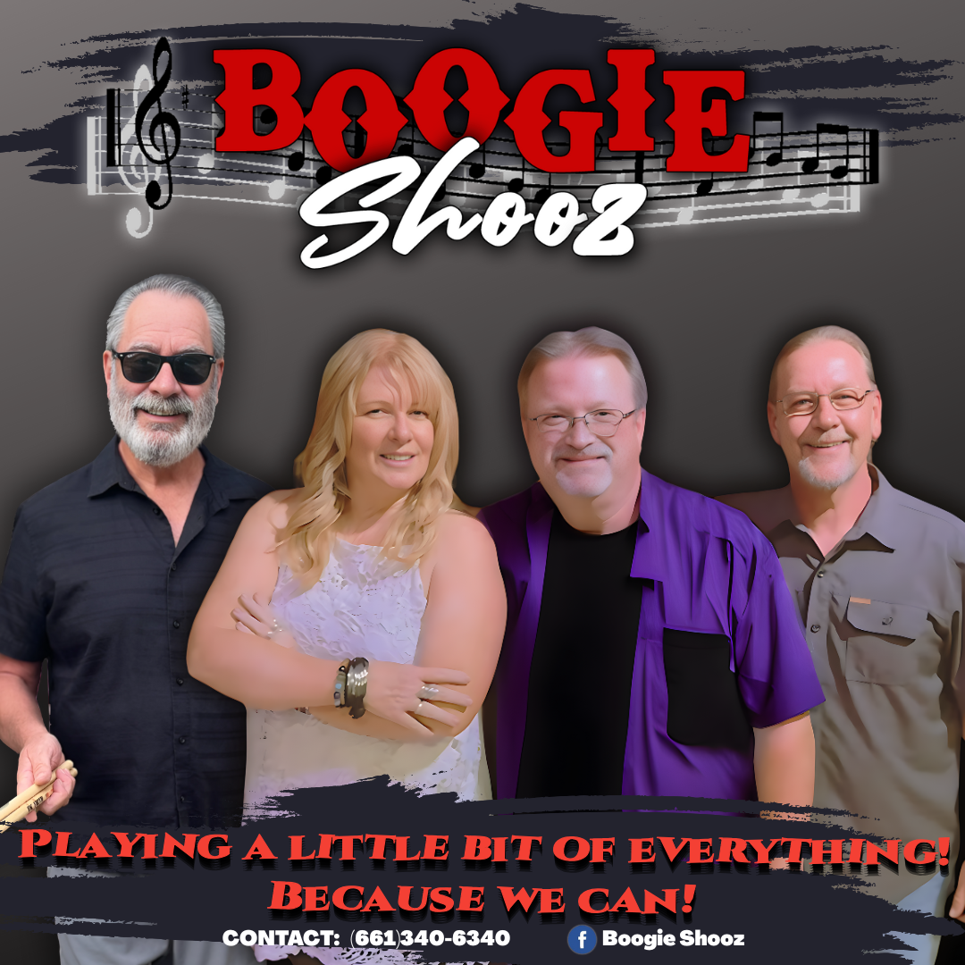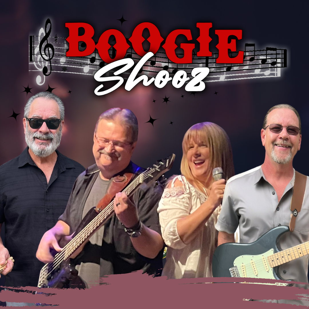 If you like your music with variety, Boogie Shooz has you covered—R&B, classic rock, and country favorites that keep every crowd smiling, singing, and dancing. Fronted by Tracy Peoples on lead vocals, with Mike Fleming on vocals and guitar, Rodney Armstrong holding down the low end on bass, and Ralph Flores driving the groove on drums, this well-rounded band truly brings something for everyone.