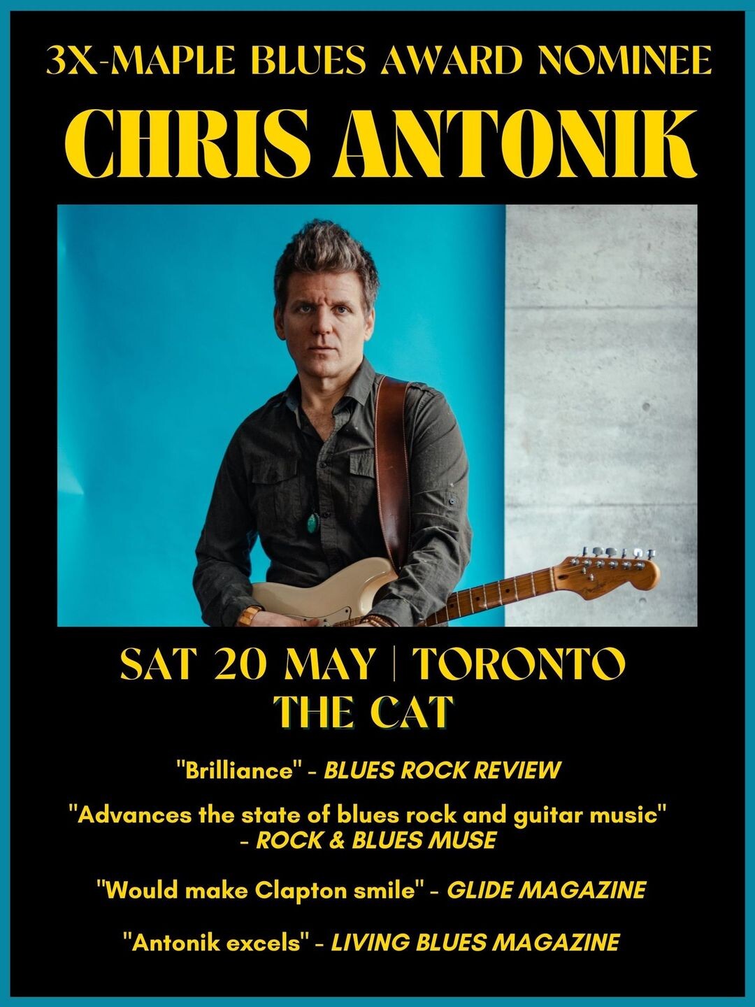 Don't miss out on seeing Chris Antonik live in concert! Experience the epic sounds of this 3x Maple Blues Award-nominated guitarist/singer/songwriter on Saturday, May 20th, starting at 10PM.