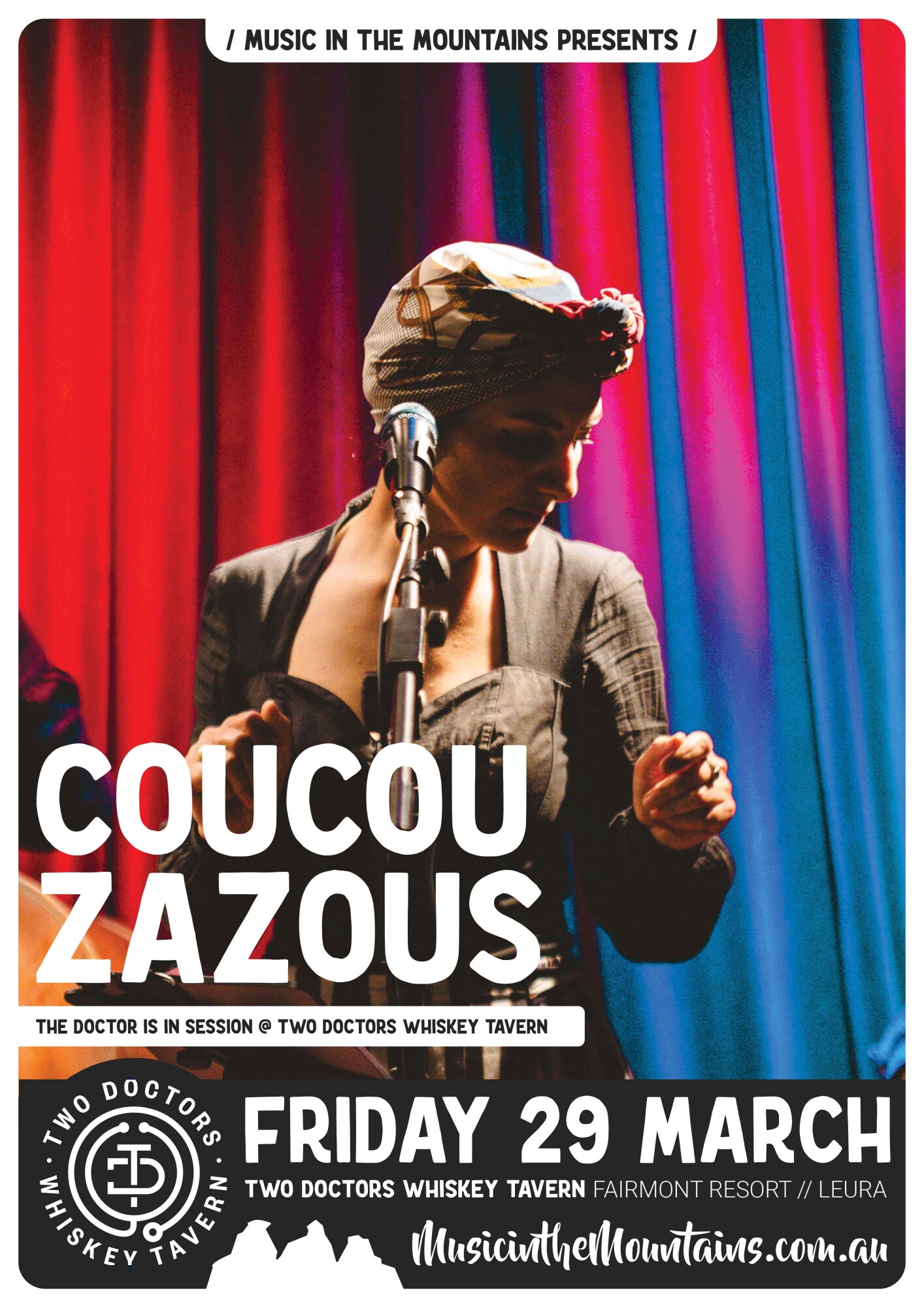 COUCOU ZAZOUS: THE DOCTOR IS IN SESSION // Friday, 29 March 2024 // 8:30-11:30 pm // Free Event; No Bookings: Walk-Ins Only // Venue: Two Doctors Whiskey Tavern; Fairmont Resort, 1 Sublime Point Rd, Leura.