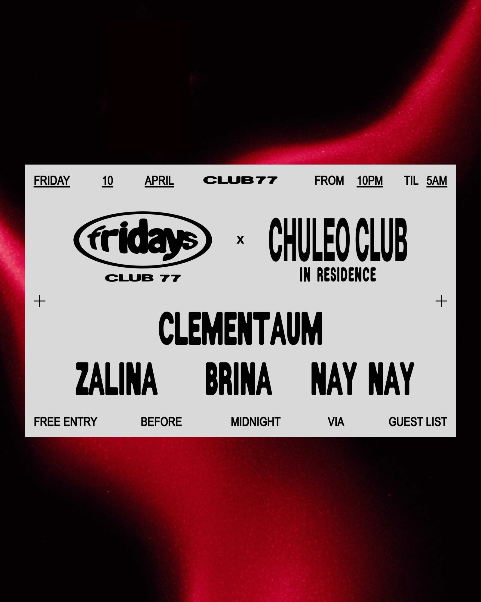Fridays at 77 x Chuleo Club: Clementaum, Zalina, Brina, Nay Nay