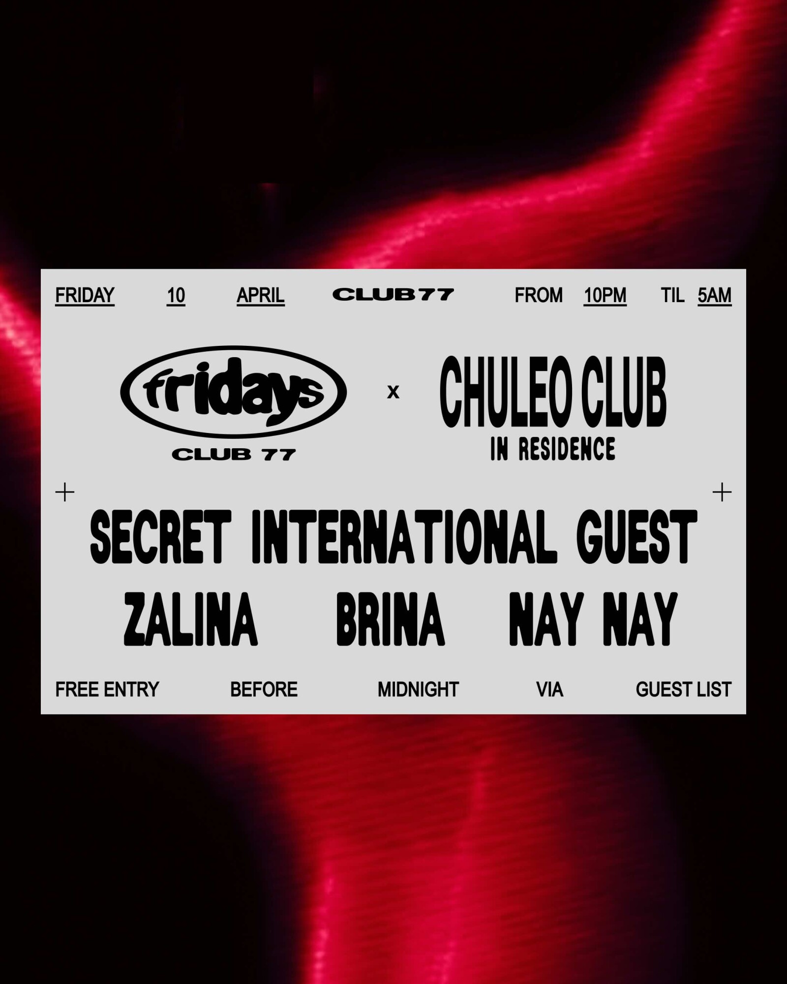 Fridays at 77 x Chuleo Club: Secret International Guest, Zalina, Brina, Nay Nay