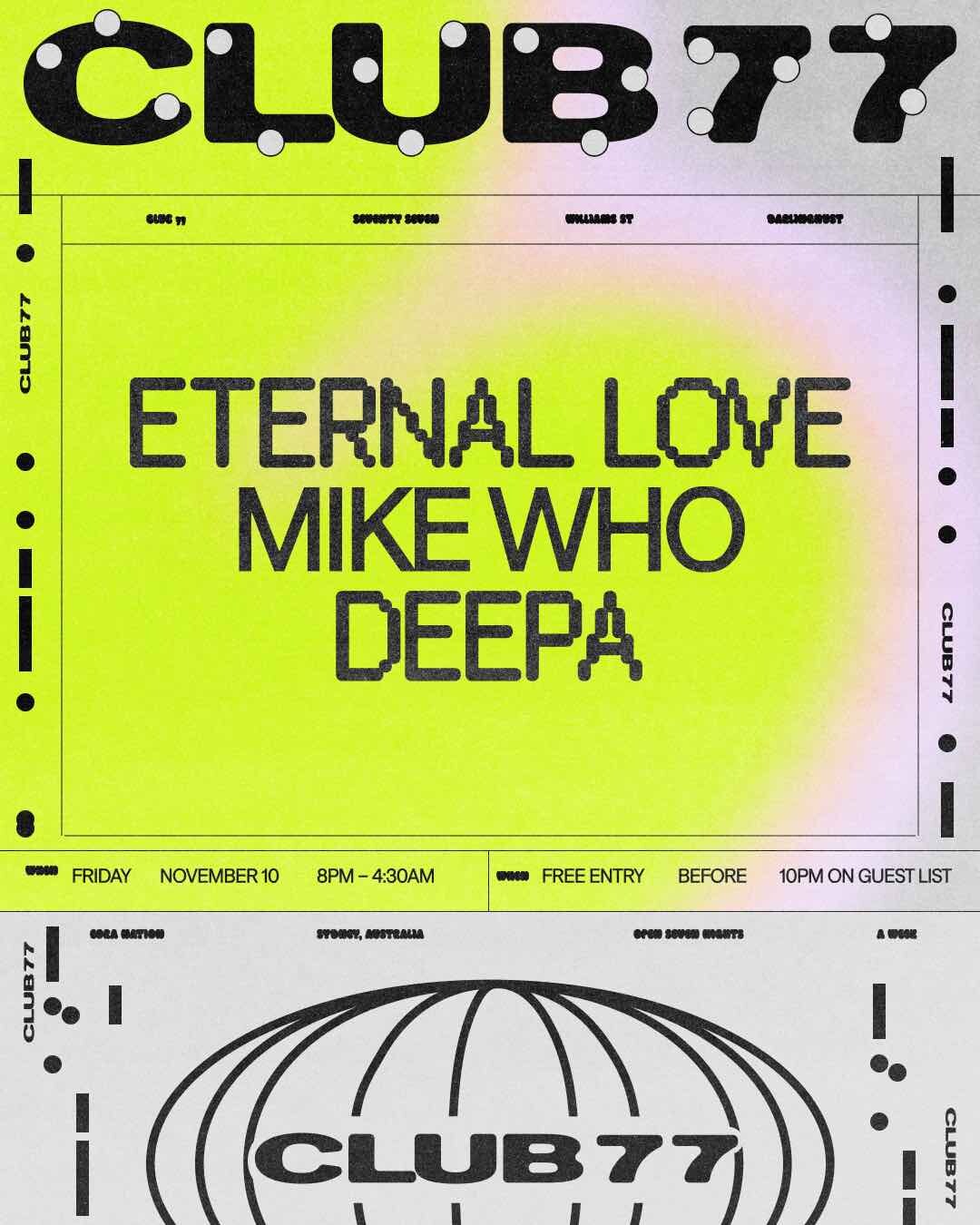 Fridays at Club 77: Eternal Love, Mike Who, Deepa