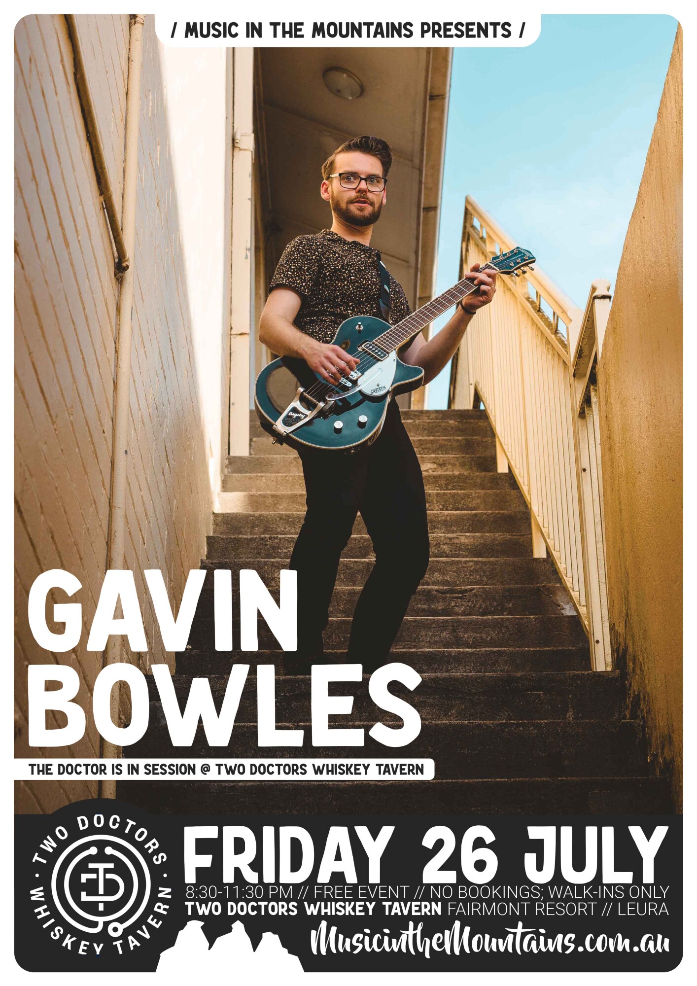 GAVIN BOWLES: THE DOCTOR IS IN SESSION // Friday, 26 July 2024 // 8:30-11:30 pm // Free Event; No Bookings - Walk-In Only // Venue: Two Doctors Whiskey Tavern; Fairmont Resort, 1 Sublime Point Rd, Leura.