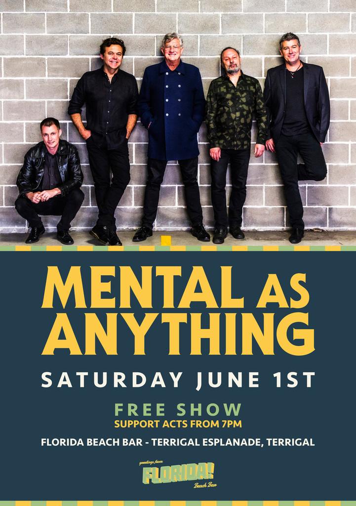 Legendary Aussie act Mental As Anything is ready to rock the Florida Beach Bar with a free show on Saturday 1st June 2019.