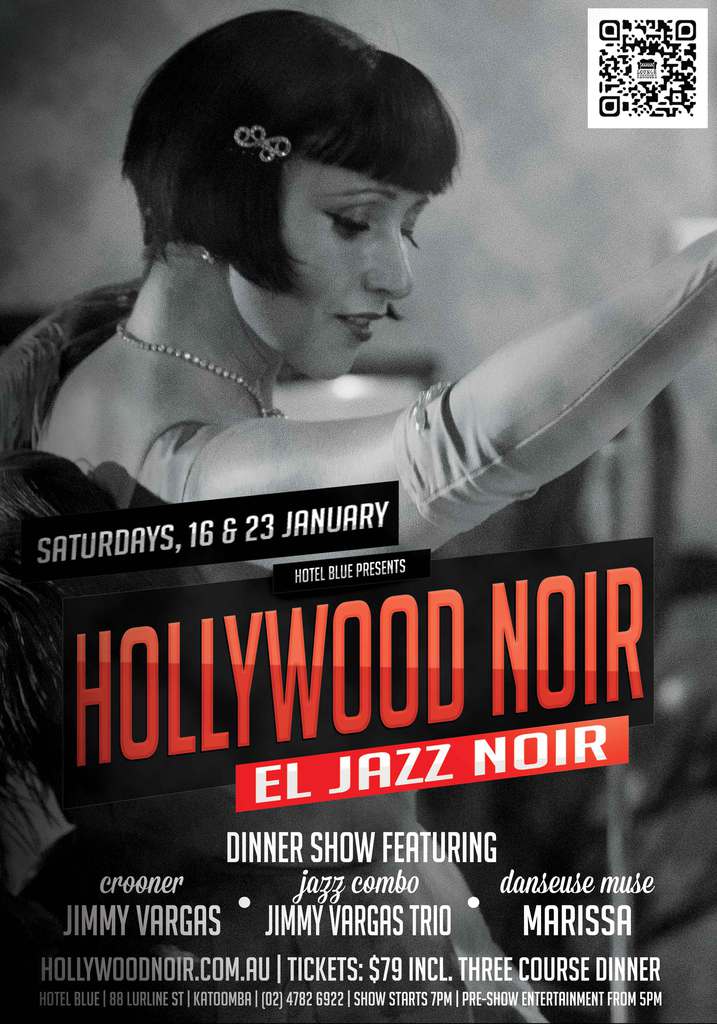 Enter the darkly glamorous world of nineteen-forties Hollywood crime dramas. Experience Jimmy Vargas and the Jimmy Vargas Trio live on stage as they create their own lost nineteen-forties Hollywood burlesque underworld.
