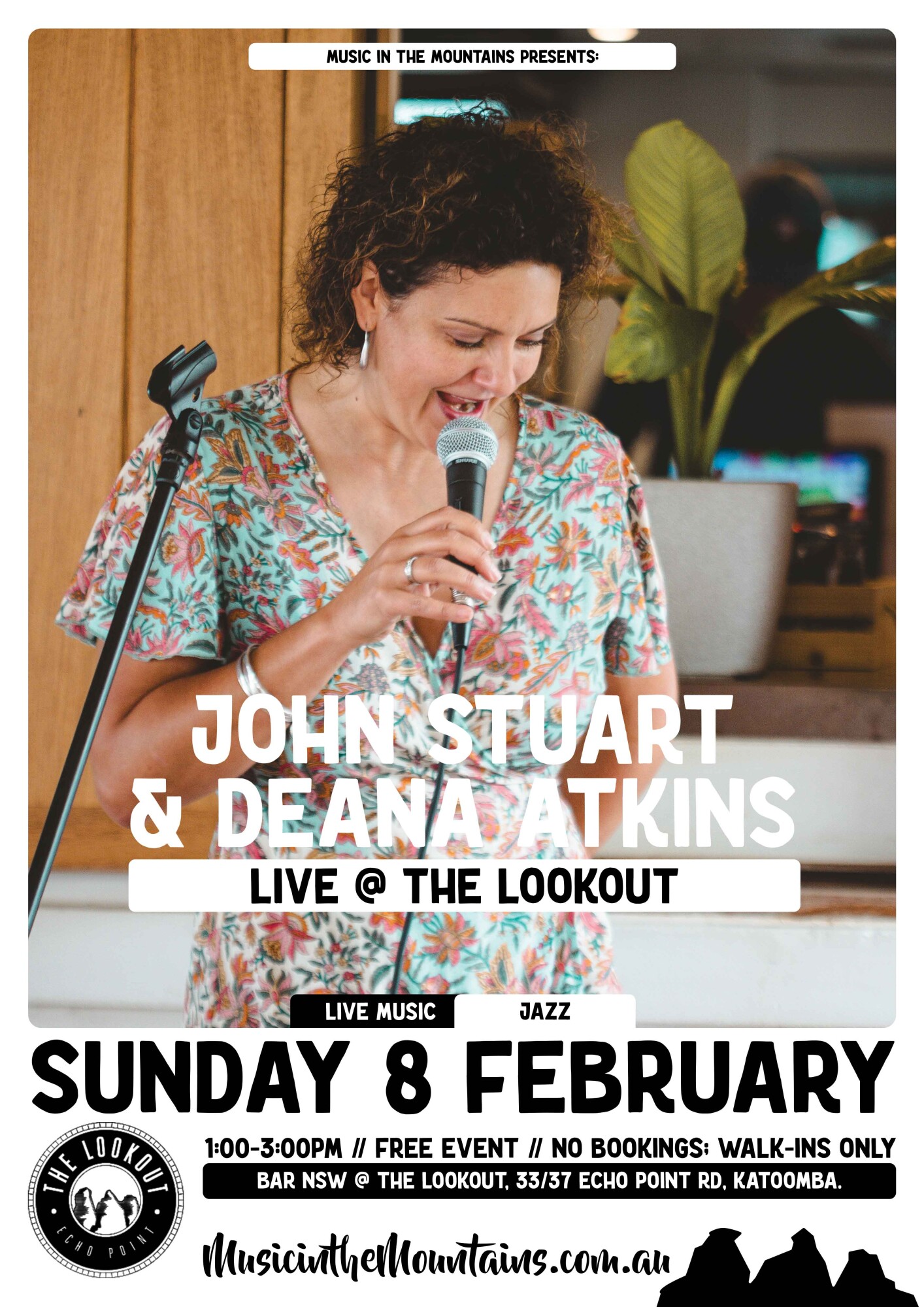JOHN STUART'S COSMIC LOUNGE feat. DEANA ATKINS: LIVE @ THE LOOKOUT // Sunday, 8 February 2026 // 1:00-3:00 pm // Free Event; No Bookings: Walk-Ins Only // Venue: Bar NSW; The Lookout @ Echo Point; 33 Echo Point Rd, Katoomba.