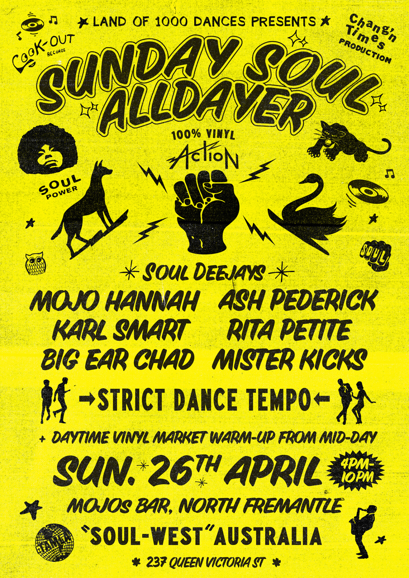 Land of 1000 Dances is back!! And would ya look at this absolute ripper of a Sunday Session they’ve got in store…It’s a fair-dinkum good old SOUL ALLDAYER, and mate—these beauties are out in full force. You’ve got the rare grooves spinning like a cyclone, vinyl whizzin’ round smoother than a croc sliding into the billabong. The DJ’s up there, cool as a koala in the shade, droppin’ these elusive tracks—proper hidden gems—each one rarer than a tree kangaroo.