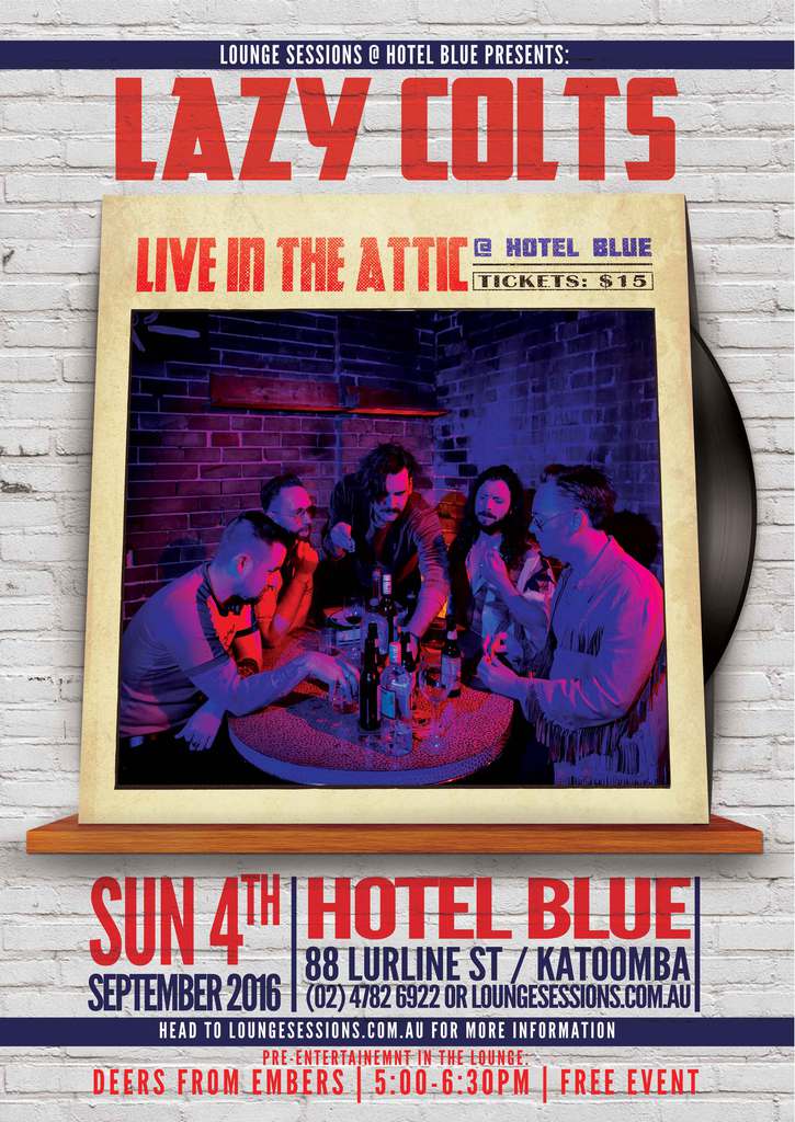 Lazy Colts' music is both richly introspective and grandly scaled. Sweeping strings, marching drums and lush melodic textures accompany Lacey Cole’s weathered vocal delivery and captivating stage presence. The Lazy Colts have been playing relentlessly over the past two years earning their stripes as one of Sydney's hardest working bands. Their debut album, to be released in August 2016, was recorded in Sydney and mixed in Montreal by Mark Lawson (Arcade Fire, Timber Timbre). The lads played in Katoomba a few years ago to a packed room in support of the Crooked Fiddle Band. Three of the band members are from the Mountains', so lets welcome these boys back home and enjoy some killer tunes. 6:30-8:30pm, $15, bar & kitchen open.