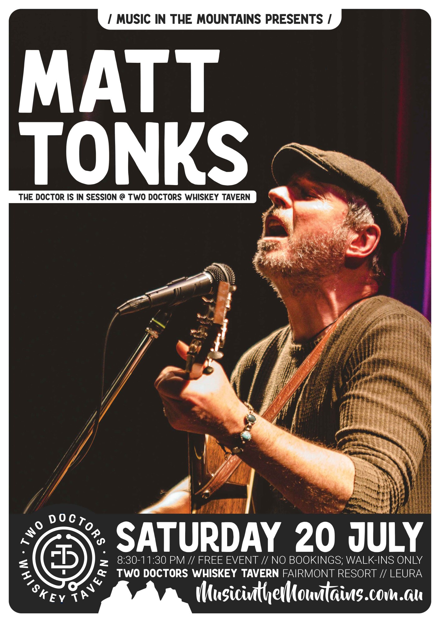 MATT TONKS: THE DOCTOR IS IN SESSION // Saturday, 20 July 2024 // 8:30-11:30 pm // Free Event; No Bookings - Walk-In Only // Venue: Two Doctors Whiskey Tavern; Fairmont Resort, 1 Sublime Point Rd, Leura.