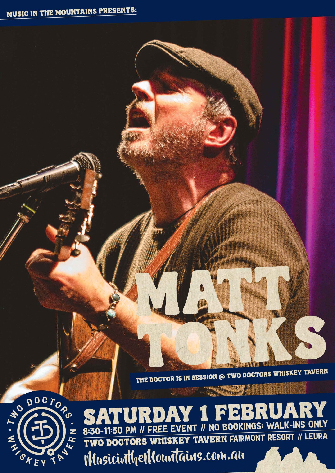 MATT TONKS: THE DOCTOR IS IN SESSION // Saturday, 1 February 2025 // 8:30-11:30 pm // Free Event; No Bookings: Walk-Ins Only // Venue: Two Doctors Whiskey Tavern; Fairmont Resort, 1 Sublime Point Rd, Leura. (18+ Only)
