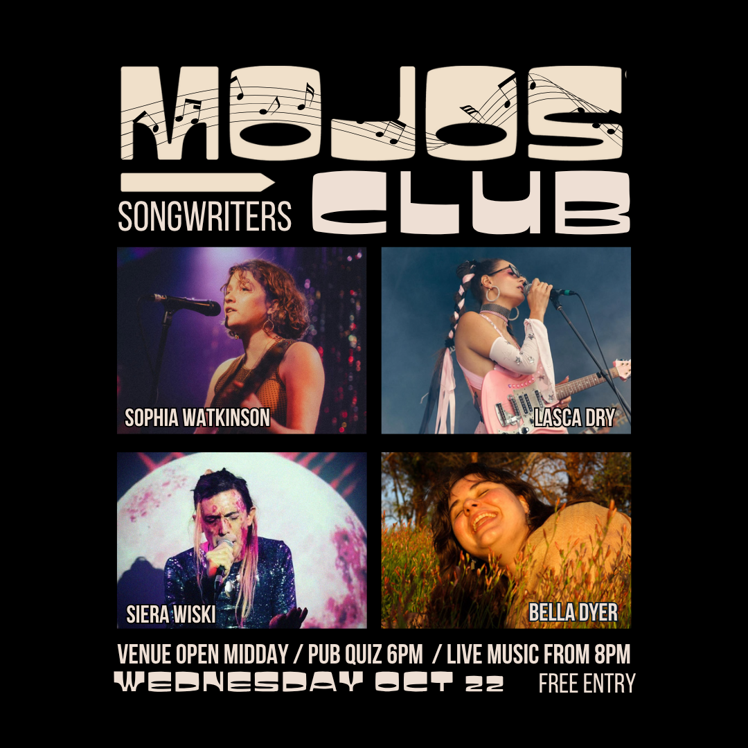 Mojos weekly night of intimate song sharing and story telling. Dim lights and brilliant songwriters baring it all with stripped back sets.