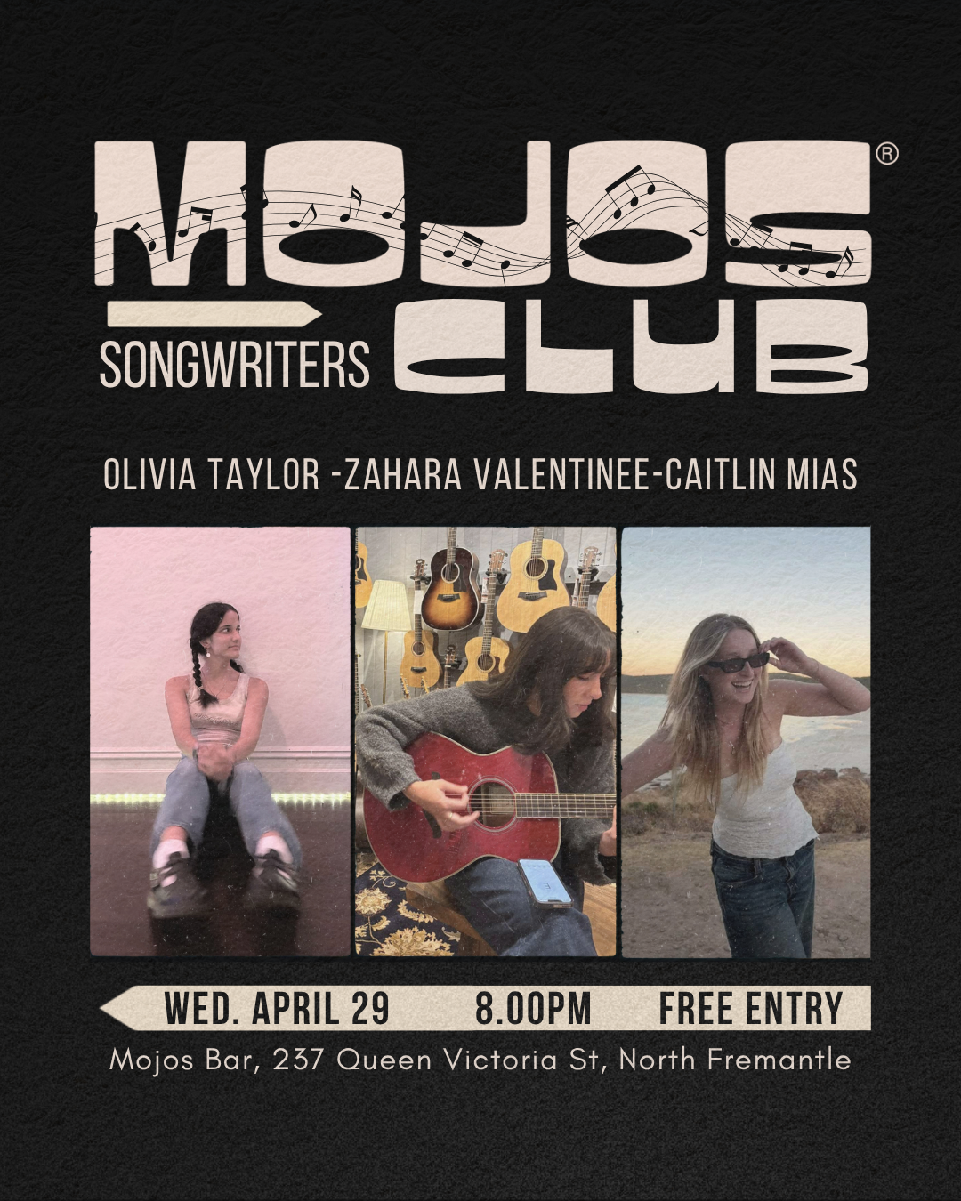 Mojos weekly night of intimate song sharing and story telling. Dim Lights and brilliant new songwriters each week baring it all with stripped back sets.