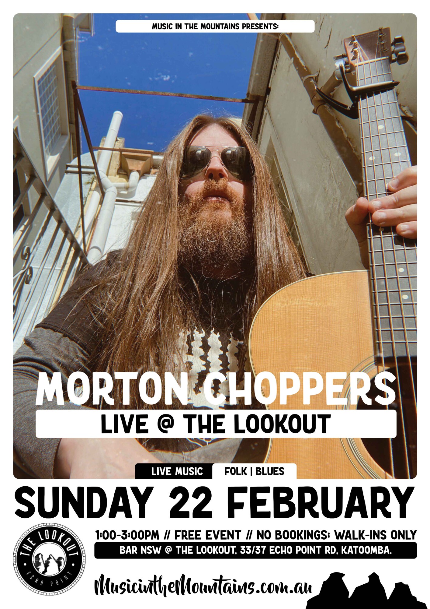 MORTON CHOPPERS: LIVE @ THE LOOKOUT // Sunday, 22 February 2026 // 1:00-3:00 pm // Free Event; No Bookings: Walk-Ins Only // Venue: Bar NSW; The Lookout @ Echo Point; 33 Echo Point Rd, Katoomba.
