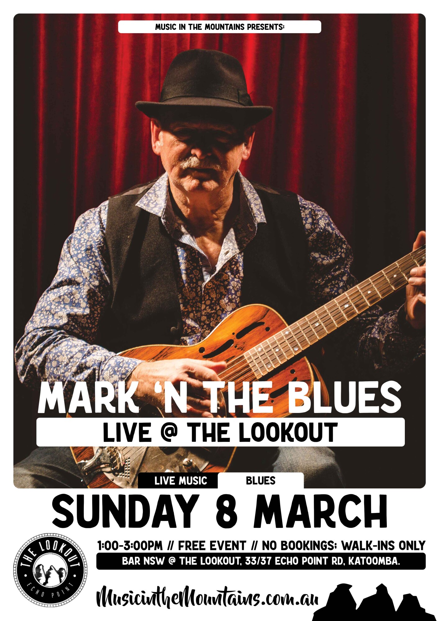 MARK 'N THE BLUES: LIVE @ THE LOOKOUT // Sunday, 8 March 2026 // 1:00-3:00 pm // Free Event; No Bookings: Walk-Ins Only // Venue: Bar NSW; The Lookout @ Echo Point; 33 Echo Point Rd, Katoomba.