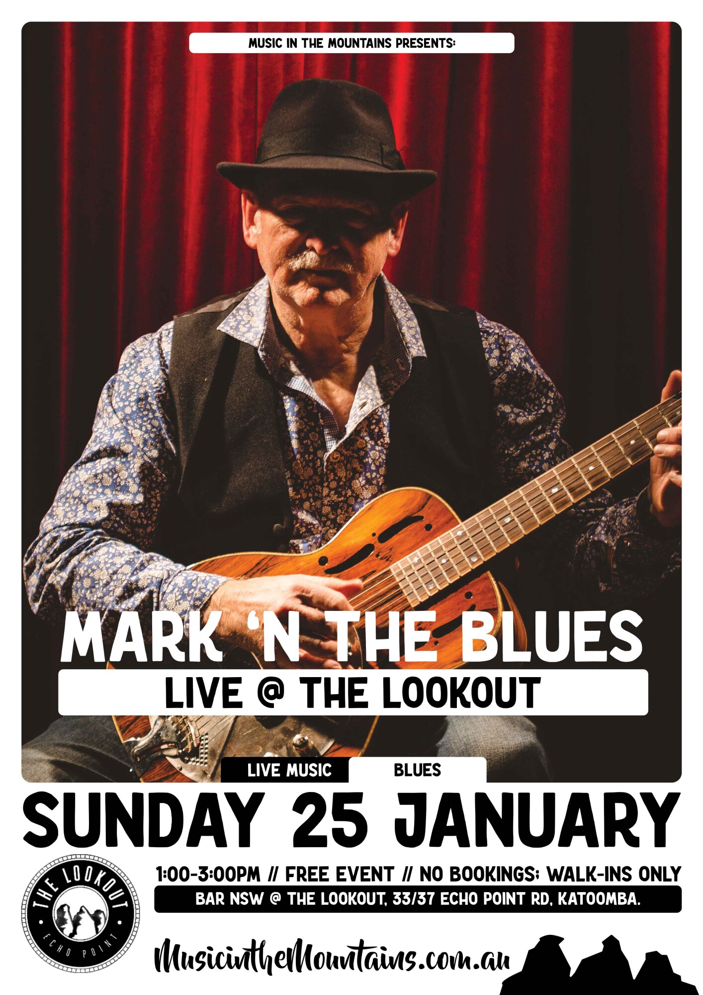 MARK 'N THE BLUES: LIVE @ THE LOOKOUT // Sunday, 25 January 2026 // 1:00-3:00 pm // Free Event; No Bookings: Walk-Ins Only // Venue: Bar NSW; The Lookout @ Echo Point; 33 Echo Point Rd, Katoomba.