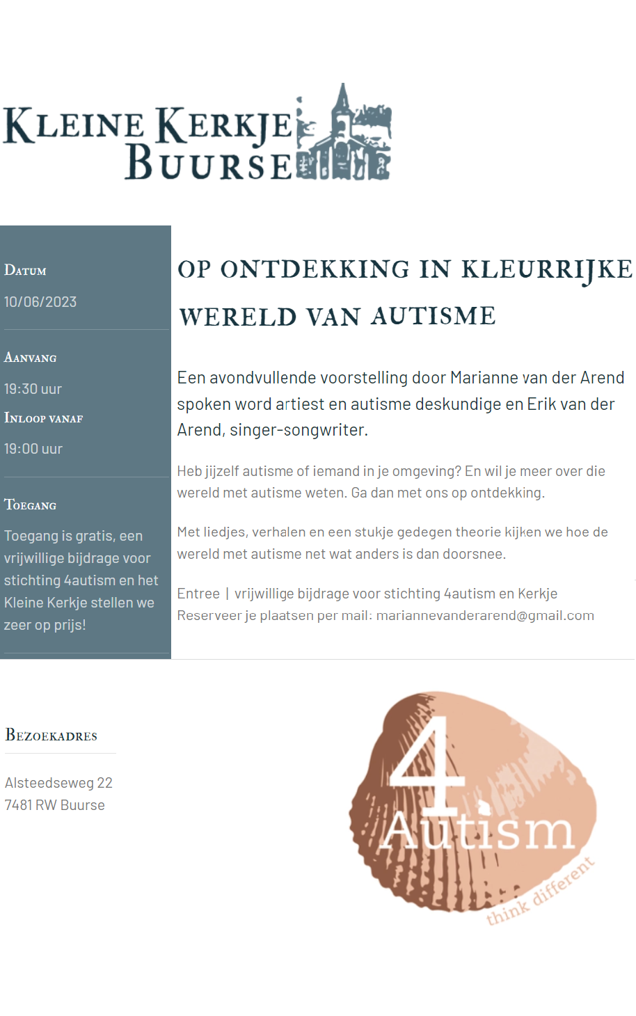 Entree | vrijwillige bijdrage voor stichting 4autism en Kerkje