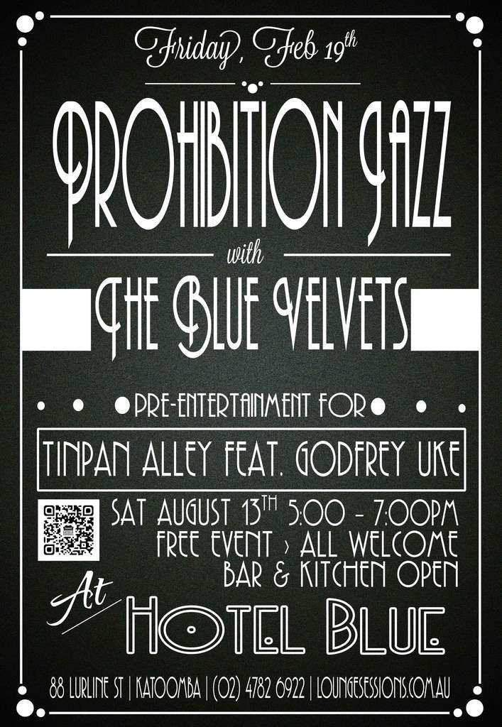 Before you settle in for Tinpan Alley featuring Godfrey Uke, come along to hear local merchants of cool, The Blue Velvets. Kate Woolfe and the gang bring along some swingin' tunes to relive the glory days of the 1920s, so order yourself a 'Sloe Gin Fizz', grab a seat in front of the fire, enjoy yourself! 5:00 - 7:00pm, bar & kitchen oen. Hotel Blue, the Mountains' own 'House of Jazz'.