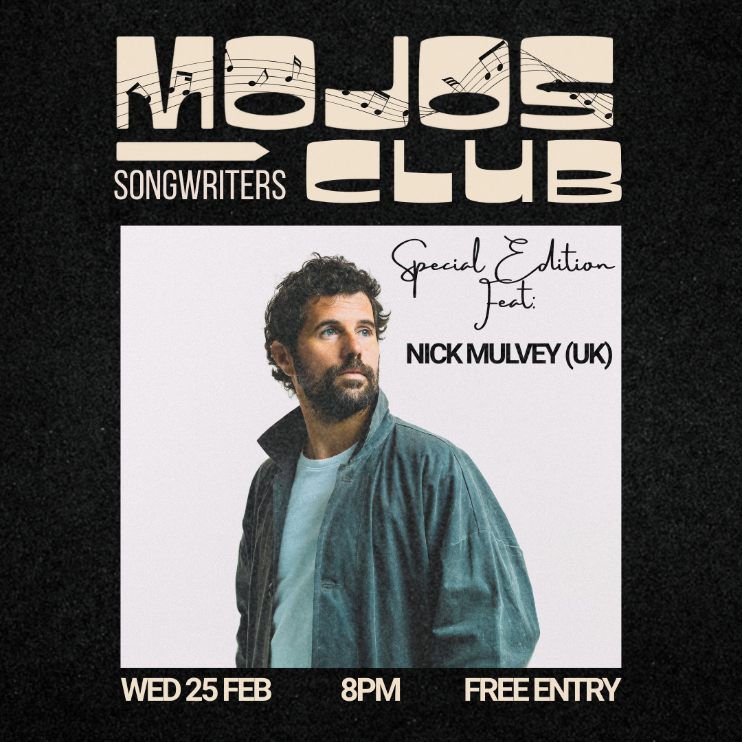 Through intricate guitar figures that seem to spiral endlessly serving as both foundation and vehicle for his words few artists so seamlessly bridge the sacred and the everyday. His music carries the poetic weight of Leonard Cohen, the introspective fragility of Nick Drake, and the hypnotic, polyrhythmic pulse of West African guitar master Ali Farka Touré. A songwriter and deeply intuitive storyteller, Mulvey’s craft is about finding the sacred in sound whether through the geometric fingerpicking of his early work or his ability to weave philosophy and social consciousness into melody.
