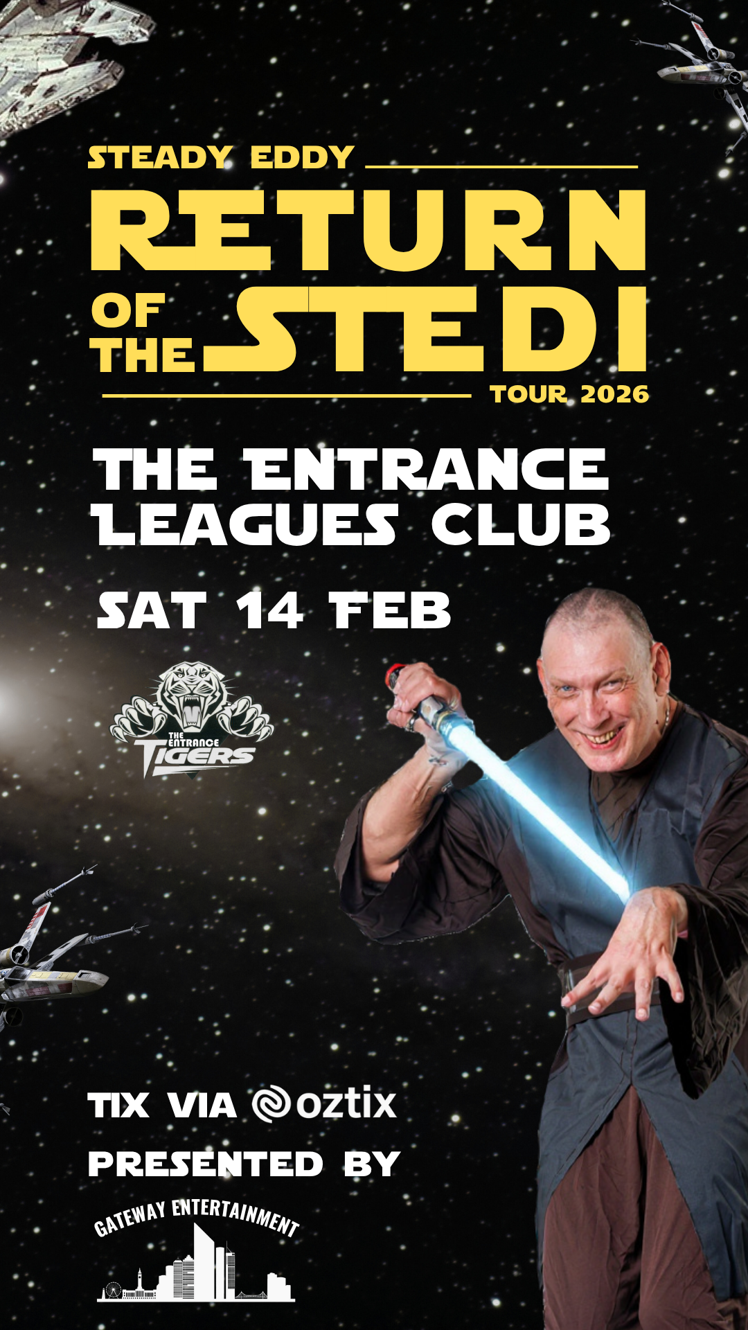 The Force is funny with this one! After decades of laughter, chaos and standing ovations (from those who can), the legendary Steady Eddy blasts back onto stages across Australia for his interstellar Return of the Stedi Tour 2026!