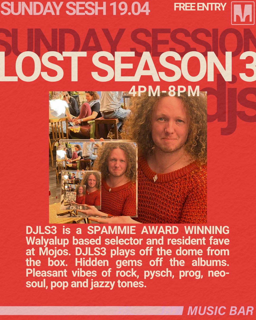 DJLS3 is a SPAMMIE AWARD WINNING Walyalup based selector and resident fave at Mojos. DJLS3 plays off the dome from the box. Hidden gems off the albums. Pleasant vibes of rock, pysch, prog, neo-soul, pop and jazzy tones.