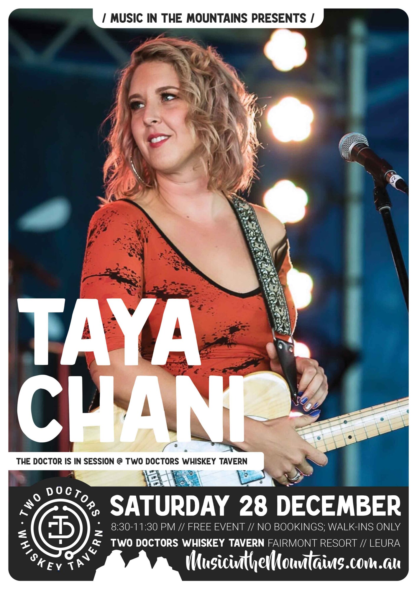 TAYA CHANI: THE DOCTOR IS IN SESSION // Saturday, 28 September 2024 // 8:30-11:30 pm // Free Event; No Bookings: Walk-Ins Only // Venue: Two Doctors Whiskey Tavern; Fairmont Resort, 1 Sublime Point Rd, Leura.