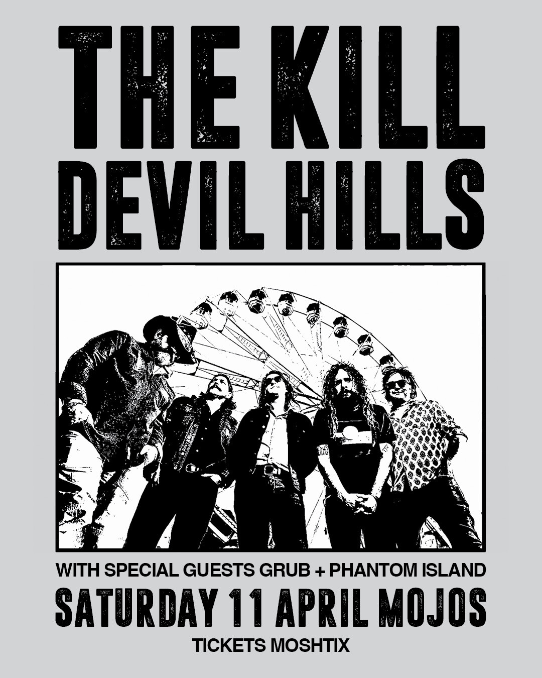 It’s been a while between drinks, but THE KILL DEVIL HILLS return to the Mojos stage in April for a blistering night of their unique brand of soaring and wrenching homegrown swamp rock.