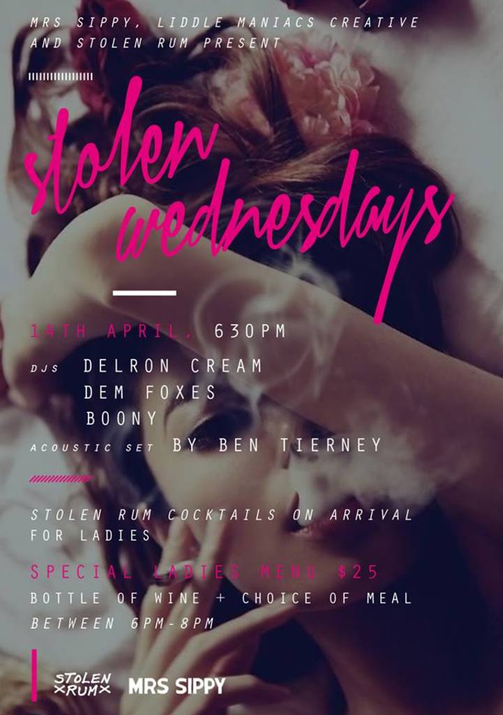 Mrs Sippy Stolen Wednesdays tonight from 630pm in the courtyard! Complimentary cocktails from Stolen Rum,